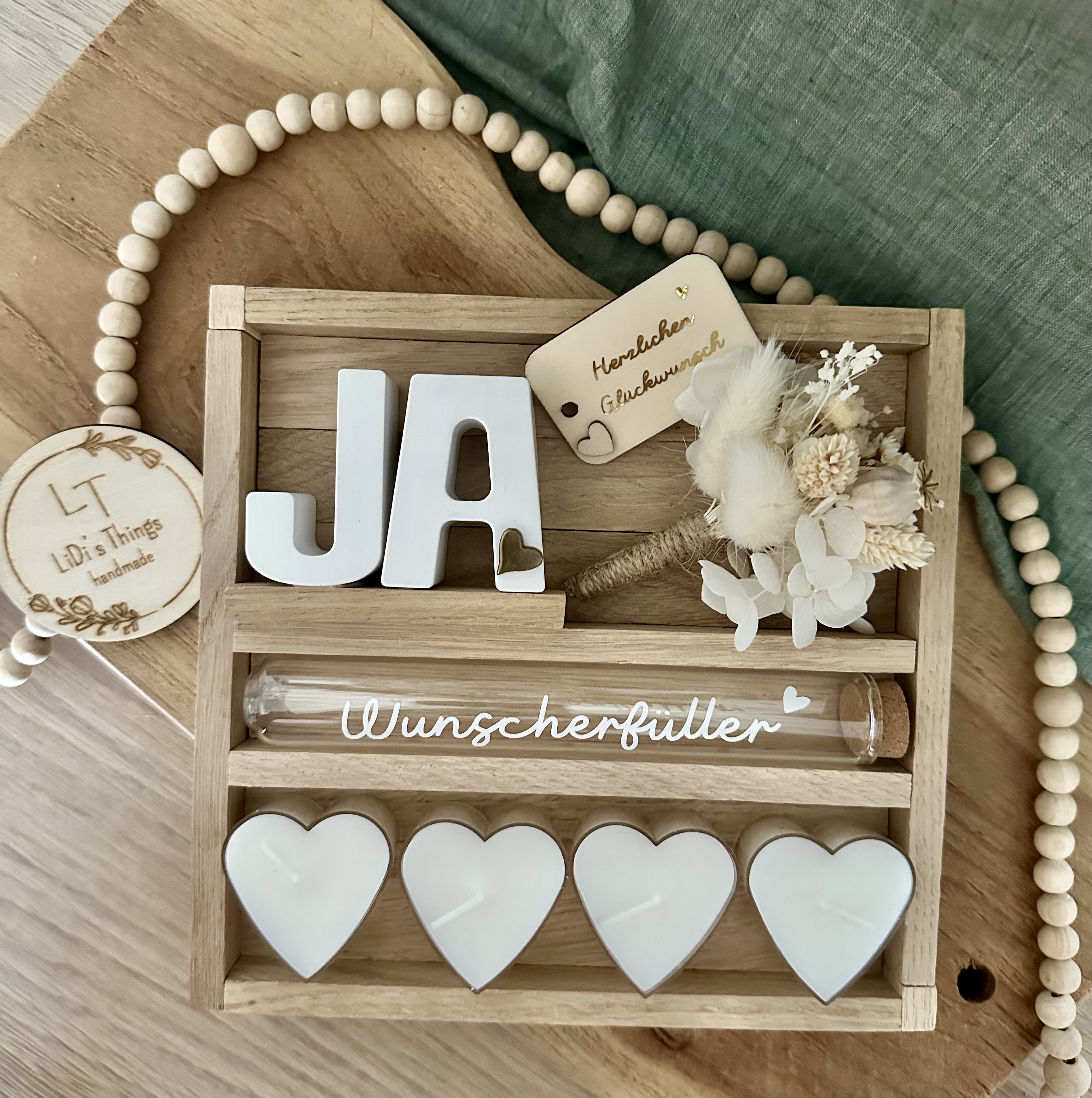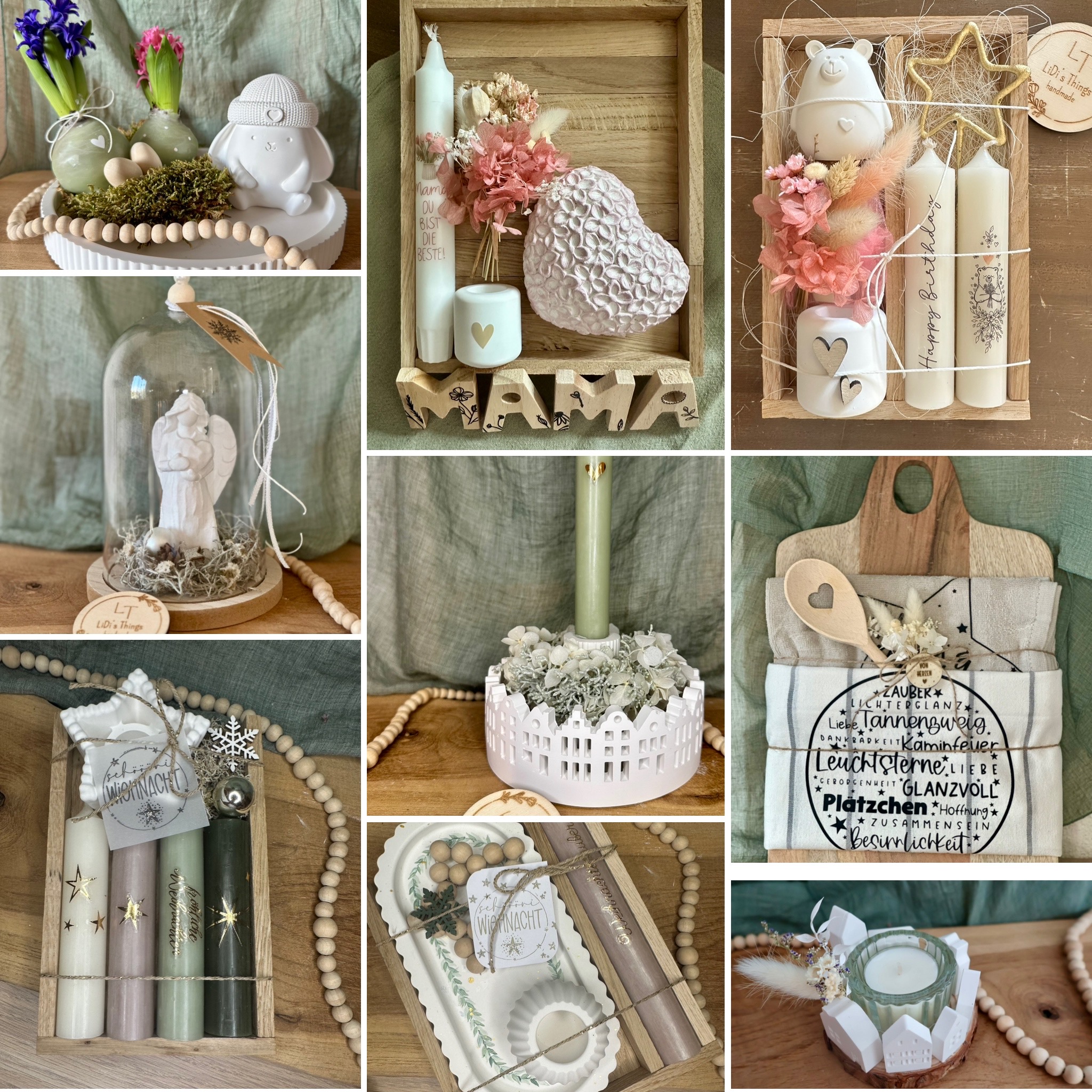 Jede Deko und jedes Geschenkset wird von mir mit viel Liebe individuell für Dich zusammengestellt.